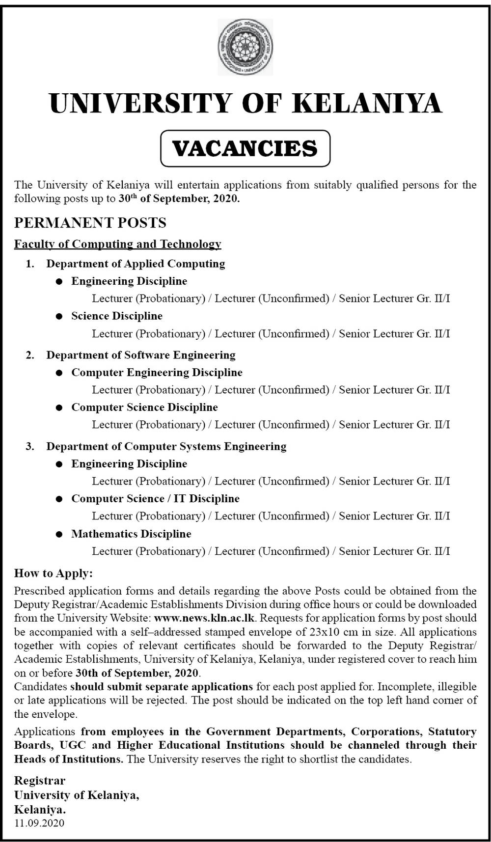 Lecturer, Senior Lecturer