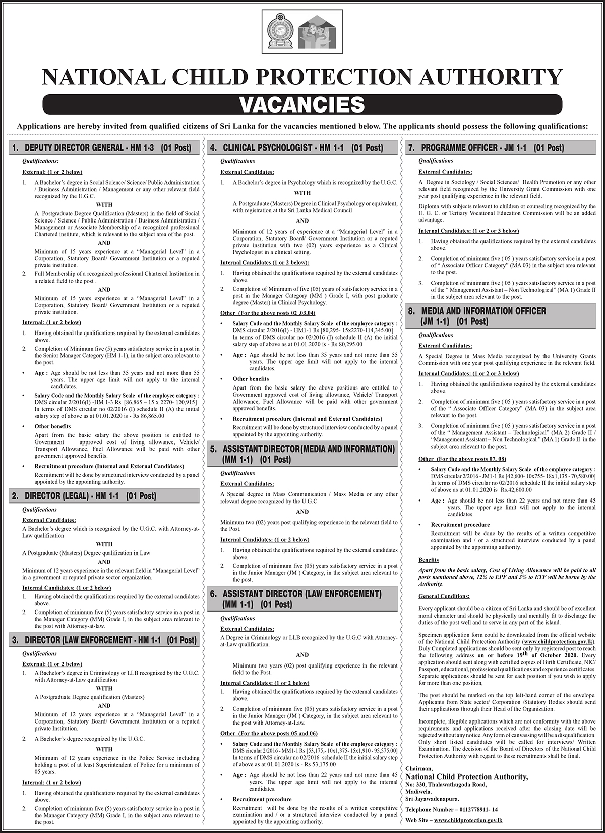 Programme Officer, Media & Information Officer, Clinical Psychologist, Deputy Director General, Director, Assistant Director